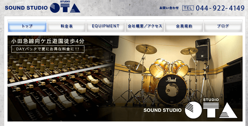 特徴:向ヶ丘遊園駅より徒歩4分に位置するサウンドスタジオOTA。バンド練習を主としてAからDまでの防音のスタジオがあり、全スタジオにギターやベースアンプだけでなくエレキピアノも常設されています。