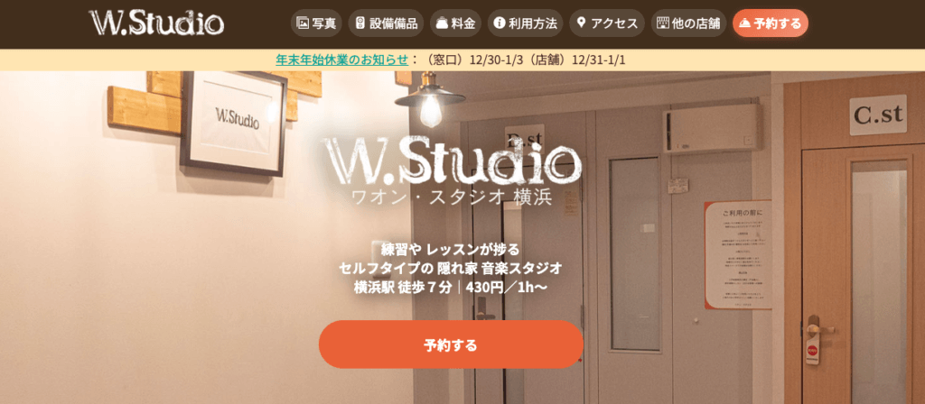 ワオン・スタジオ横浜は、横浜駅から徒歩7分の立地にある、セルフタイプの低価格音楽スタジオです。予約から入室までネットで完結でき、日常的に使いやすい点が特徴。アコースティック楽器や声楽など、小音量・少人数での個人練習やレッスンに適した環境が整っています。
